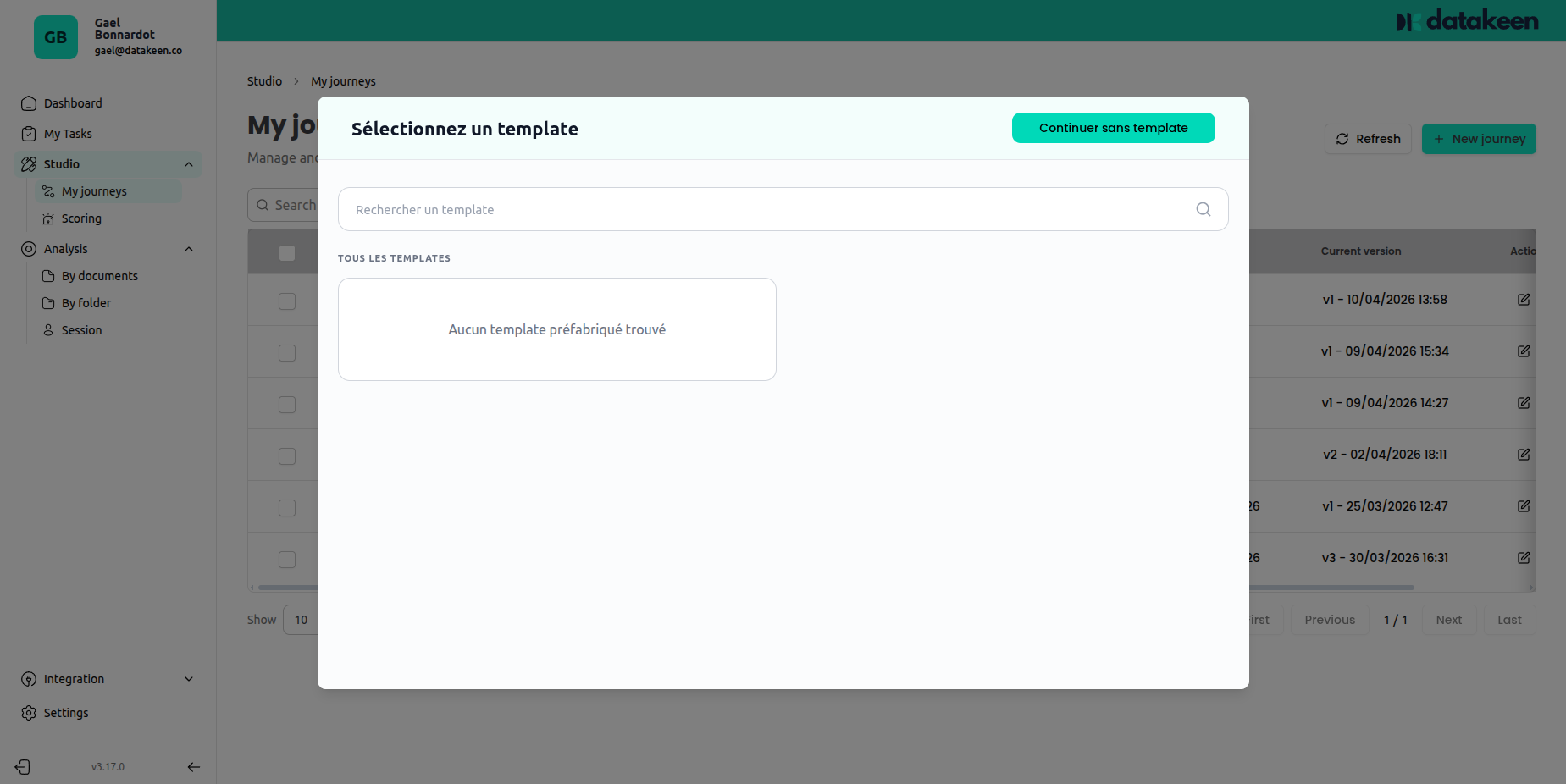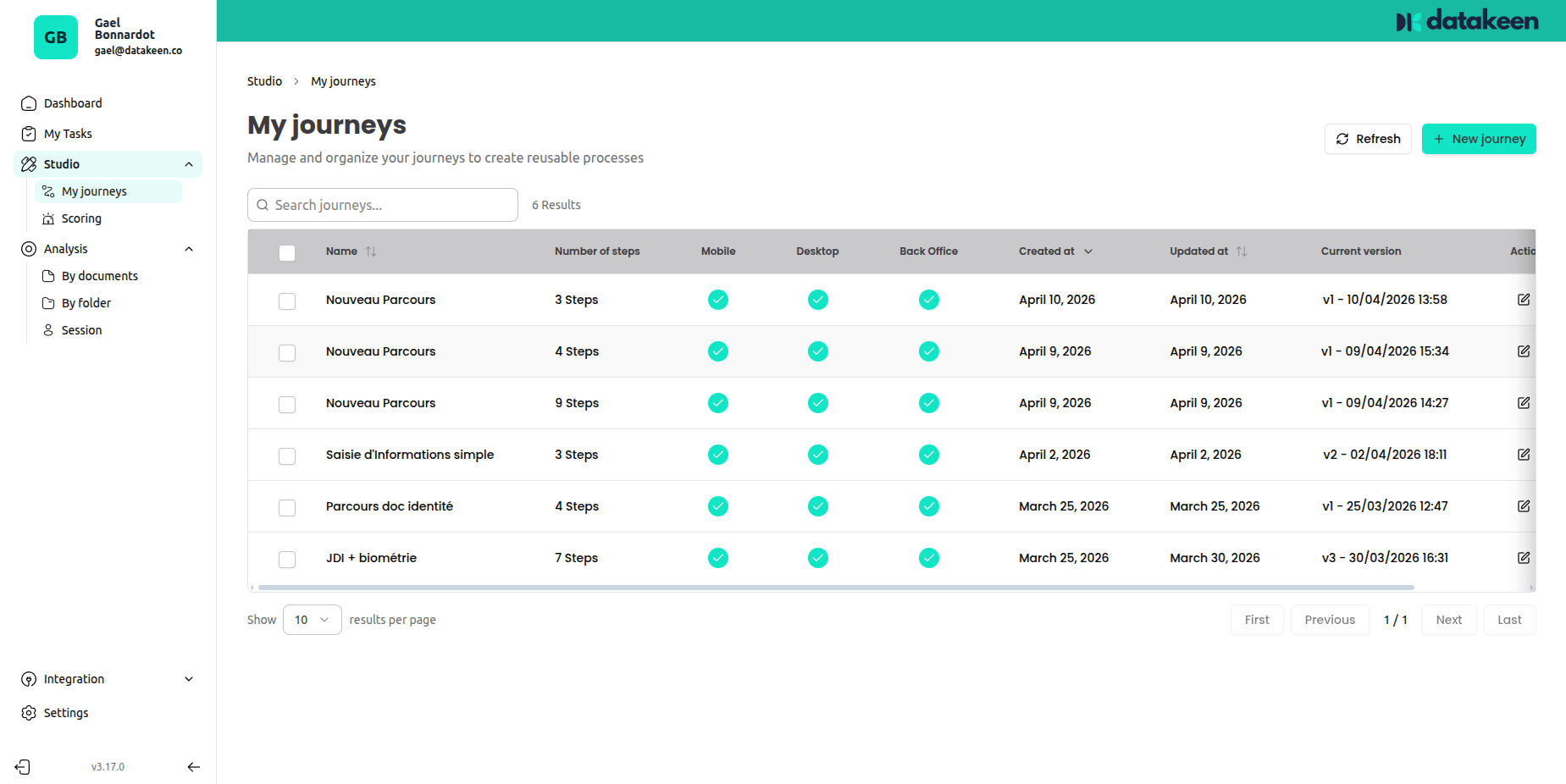 From the left sidebar, click Studio β My journeys. You'll see a list of all the journeys you've already created.