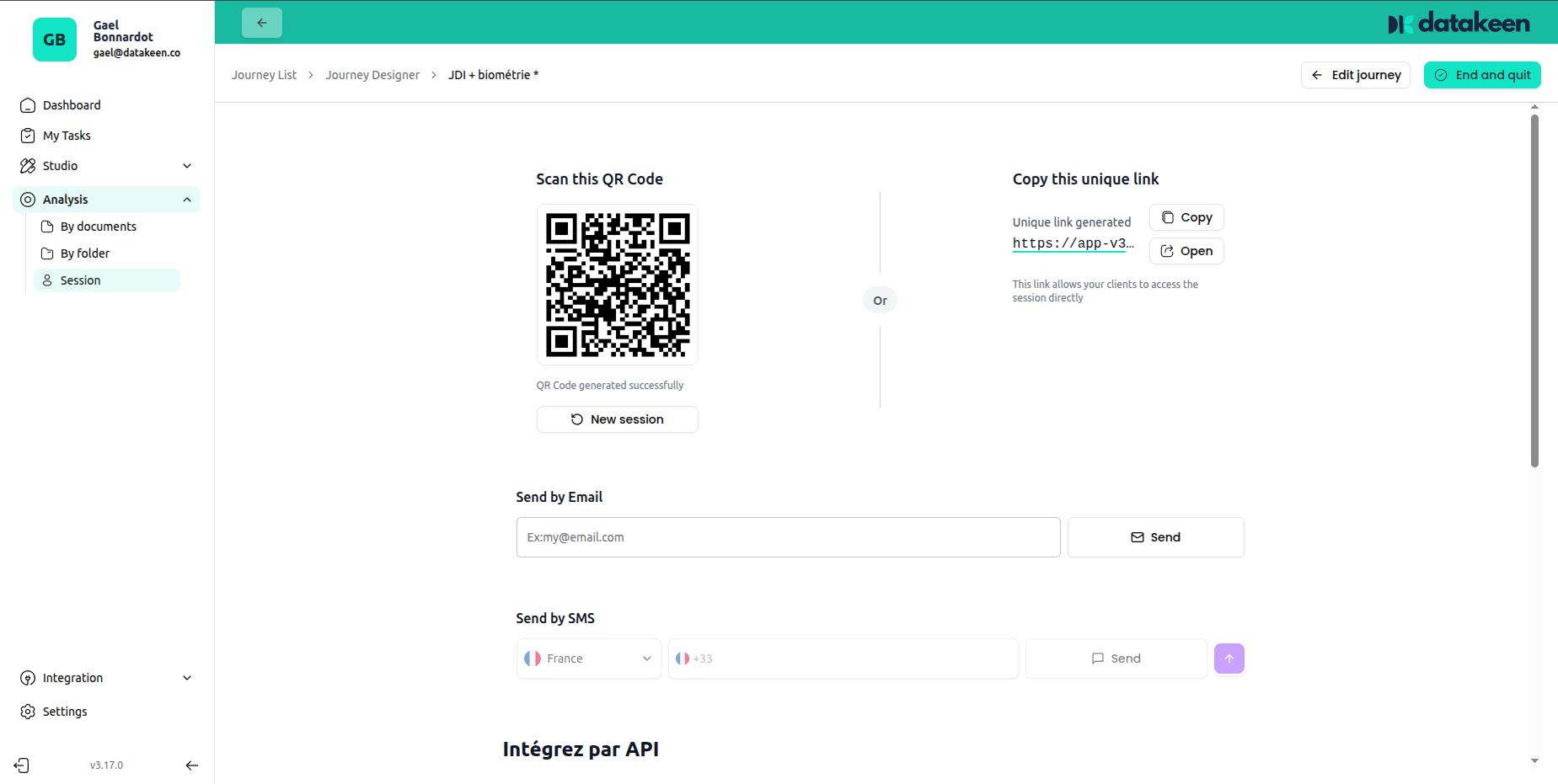 Results are automatically stored in your back office under Analysis as soon as the user completes the journey.