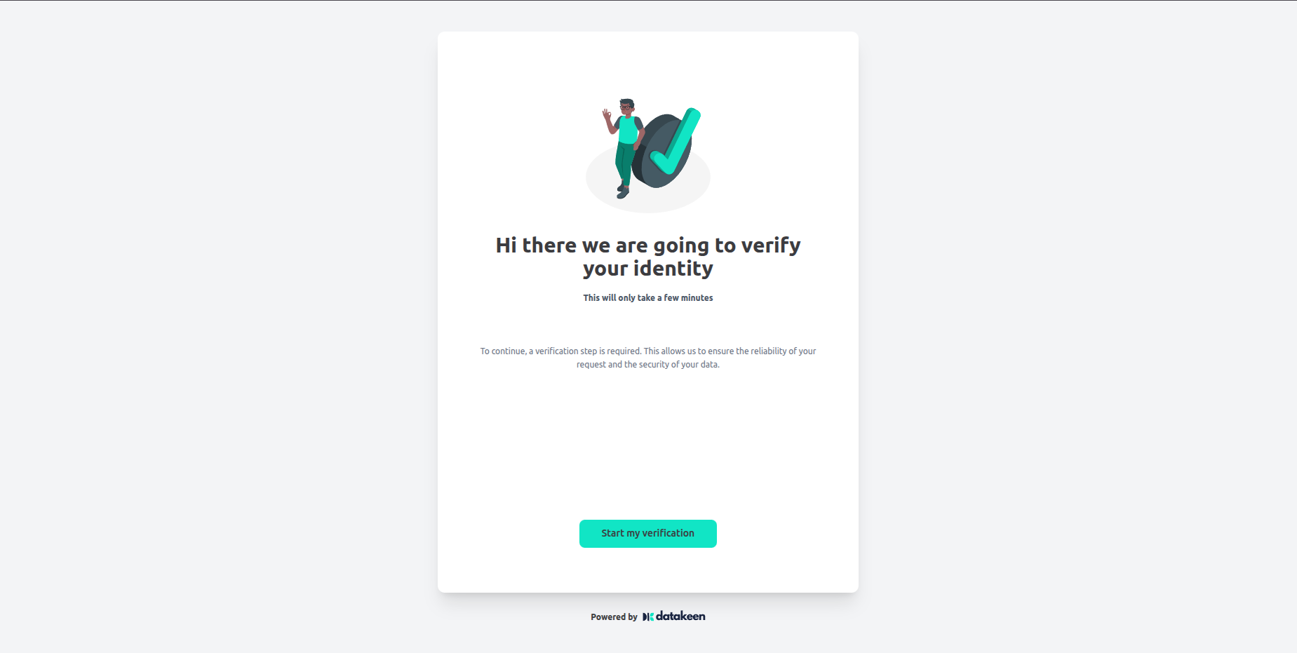 When a user opens the journey link, they see a clean, mobile-friendly flow powered by the Datakeen SDK. It guides them step by step through the verification process.